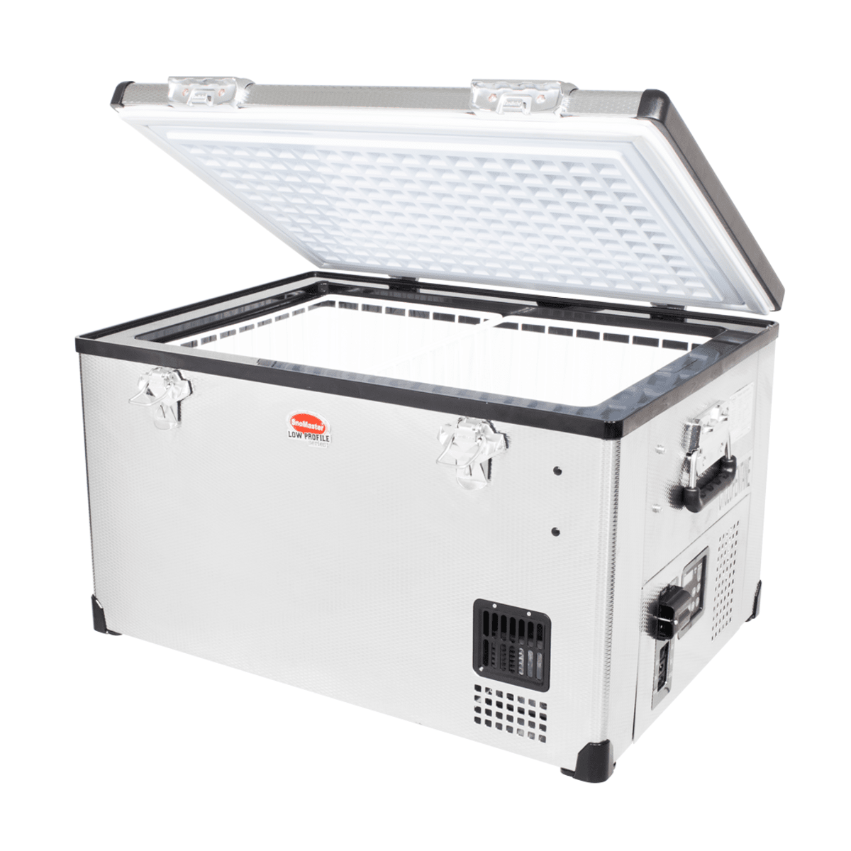 SnoMaster SMDZ-LP65 12V-220V 65 Liter Portable Fridge-Freezer packs all the necessary features for your on-the-go coolness. Featuring low profile single compartment stainless steel design, it fits conveniently under most touring covers. Its corner feet with mounting holes provide secure mounting on any terrain. In addition, an included solar-powered remote controller lets you make sure your unit always works optimally, whether on the road or deep in the wilderness. Get ready to explore!