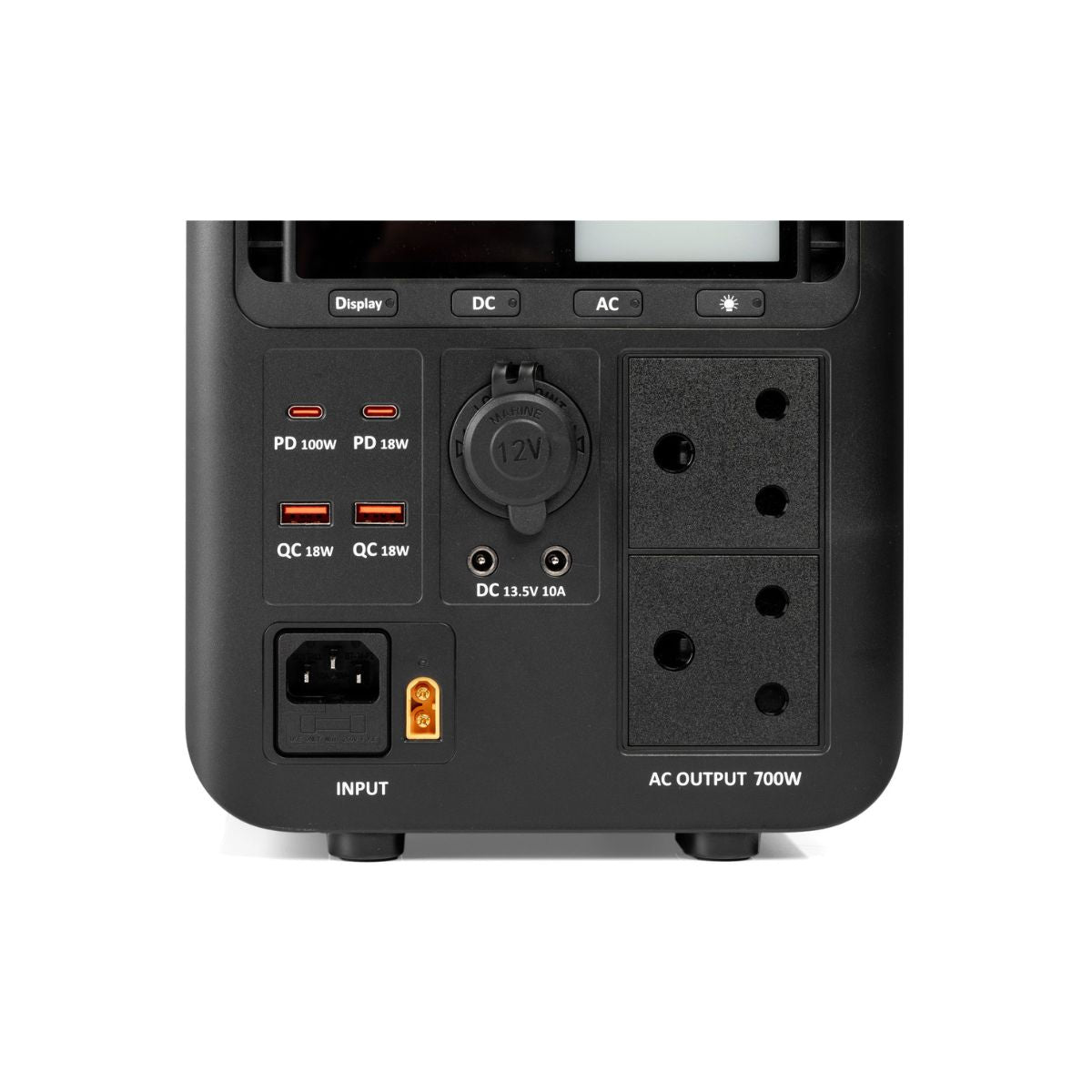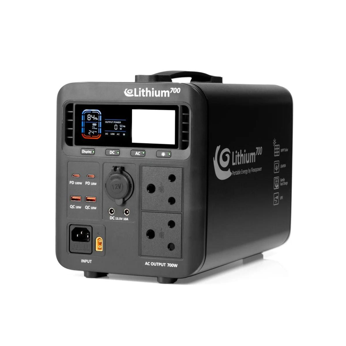 | AC Output | 700W (1400W peak), 230V, 50Hz, pure sine wave |