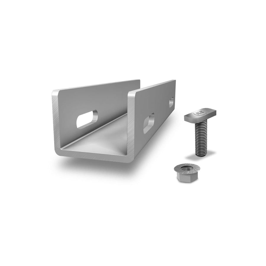 Rail connector set as connecting element between two K2 CrossRails 36. screw included. Material: Aluminium EN AW-6063 T66, stainless steel A2