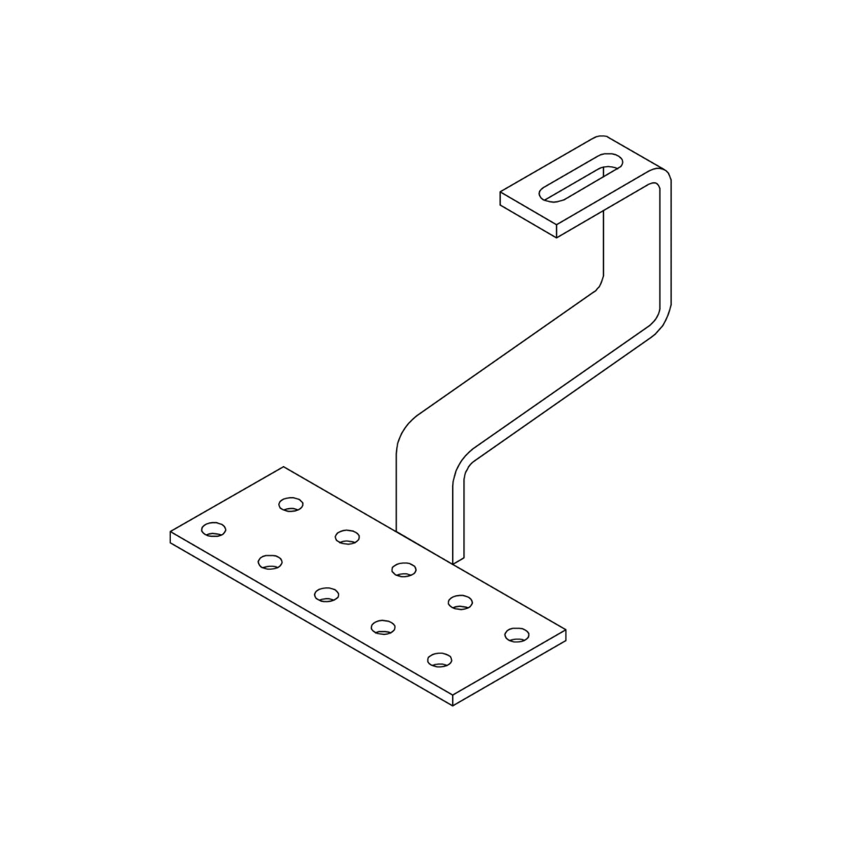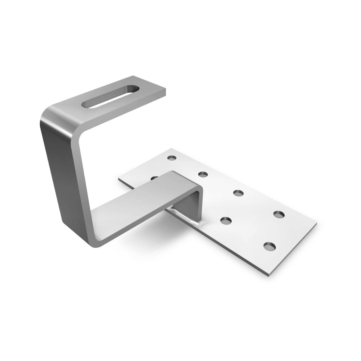For fastening of K2 system parts on roofs with pantiles. Bracket with long hole for SolidRail mounting with T-bolt screw and hexagon flange nut M10. Base plate: 150x60x5 mm, bracket: 30x6 mm, height under bracket: 47 mm (for roof lath 30 mm height), overall height: approx. 133 mm. Material: stainless steel (1.4016)