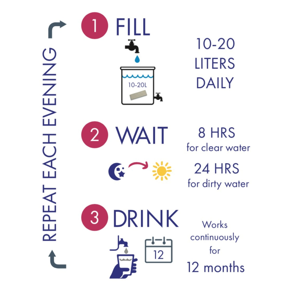 - Low Cost: Provides a family with 12+ months of safe water at the lowest possible cost.