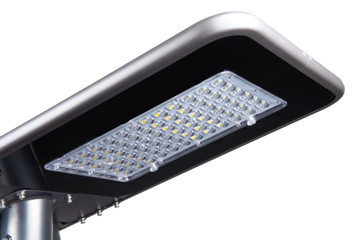 This modern Street Light is easy to install and maintain and has an auto on and off function for day and night. It comes standard with a high temperature resistant li-ion battery capable of 1500+ cycles (up to 12 years’ lifespan)