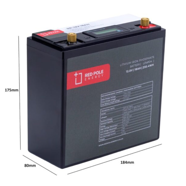 Red Pole Energy 12V 18Ah 230Wh LiFePO4 Battery