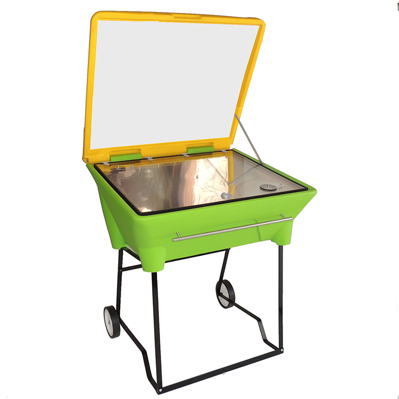 - The curved reflective upper lid can be manipulated to focus its reflection directly on specific pots.